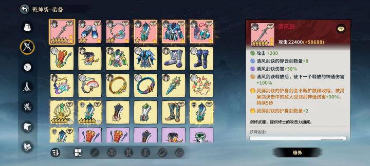 清风平民流在改版后由于清风剑诀cd从1秒左右变成3秒左右,通过高频次释放清风剑诀刷下一个技能100%伤害的优势已经聊胜于无,但前天官方的暗改加强数据已经让清风剑诀重新能打,故而保持原来的装备也有强度在线。