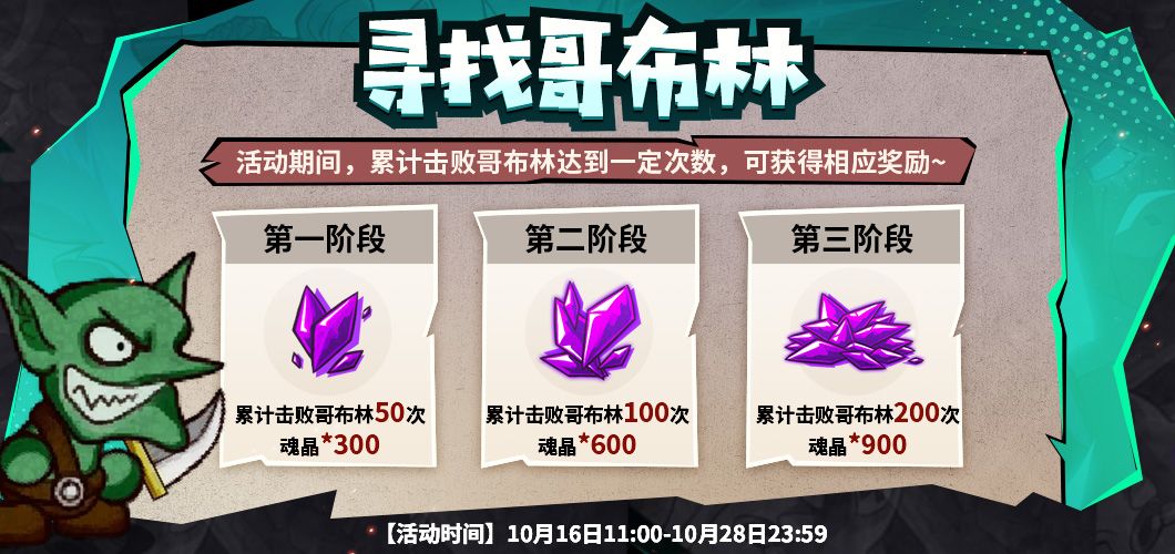 活动期间,累计击败哥布林达到一定次数,可获得相应奖励~