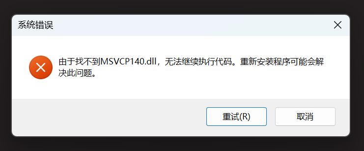 )。就像游戏启动时,会弹出一个超经典又让人头疼的错误窗口:“缺少 MSVCP140.DLL 文件!”