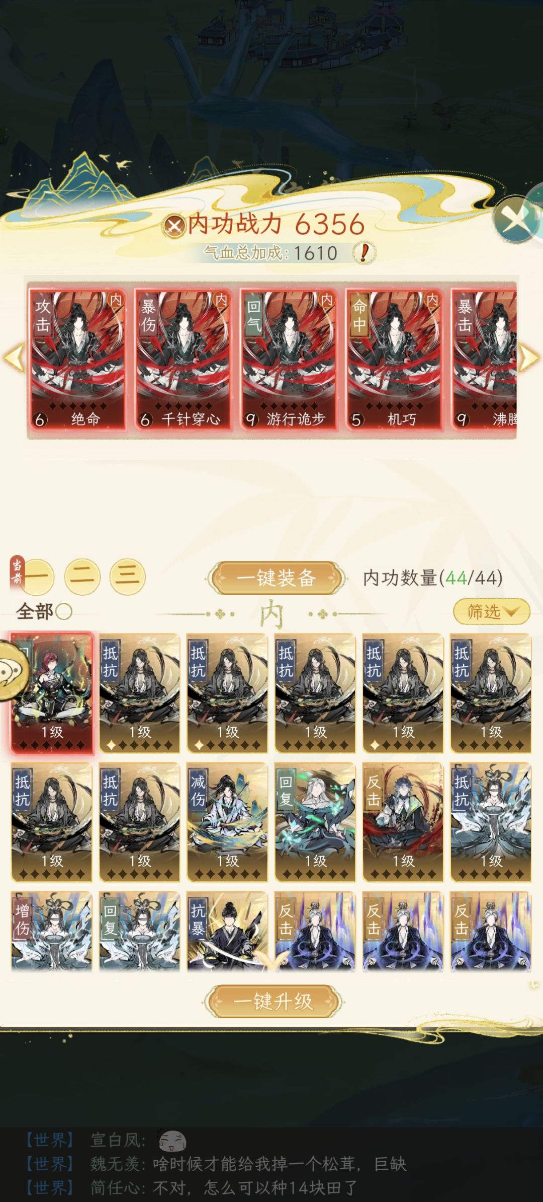 感觉我们唐门玩家是真唐人,好不容易等到唐门门主出来了过去一看哦吼还是依旧固定得内功搭配,不是,咱就是说唐门死绝了吗,连一个会本家内功的都没了。