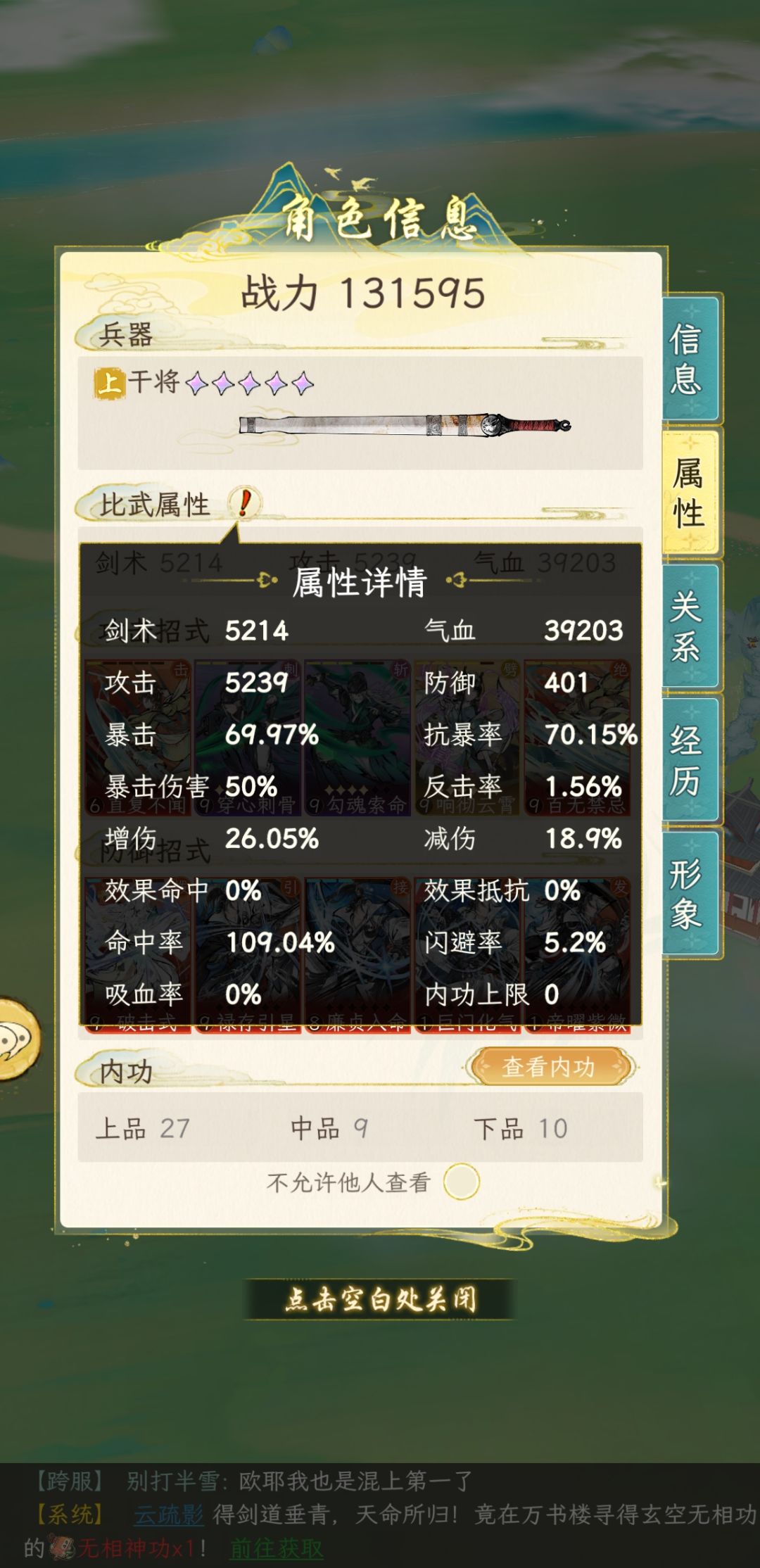 7,10月1号通关中原门派,7号通关中原,通关属性放在最后(武学套路就是上面那套)