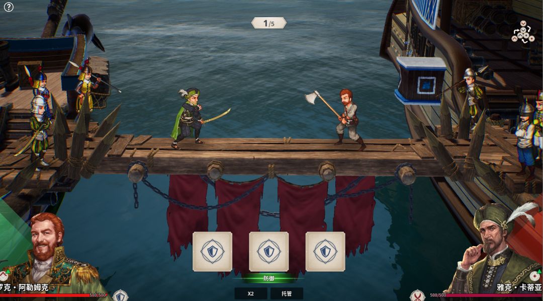 - 决斗:与敌方船只船长展开一对一决斗,需满足 “双方甲板高度相同”“敌方接受决斗” 两个条件;决斗胜利可直接击沉敌方船只,是快速破敌的关键方式。