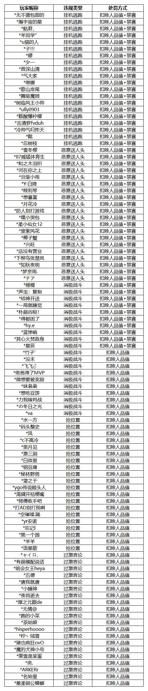 内务组将定期公布部分游戏违规处罚名单,以上为本次公布的存在游戏违规行为的阴阳师大人,还请各位大人引以为戒!