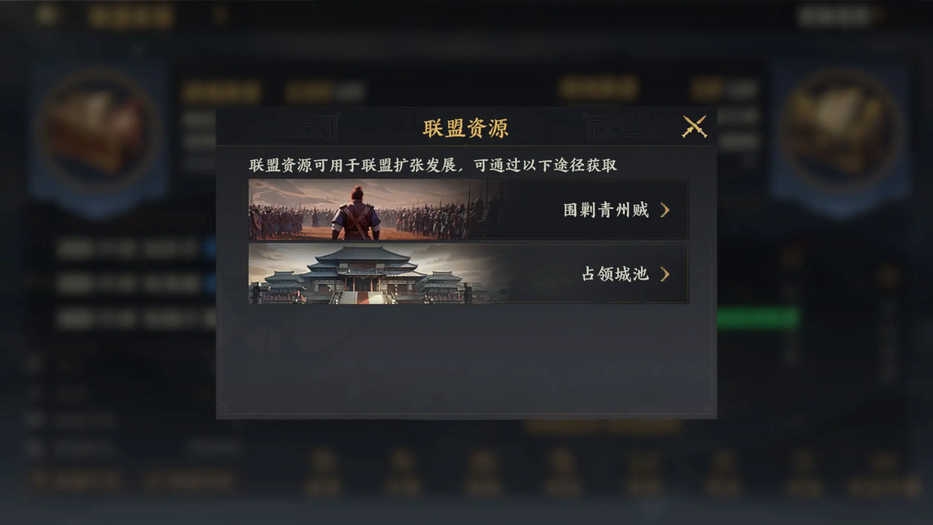 ●联盟资源主要通过讨伐青州贼和占领城池获得,建造军械和研究联盟科技都需要消耗对应物资。