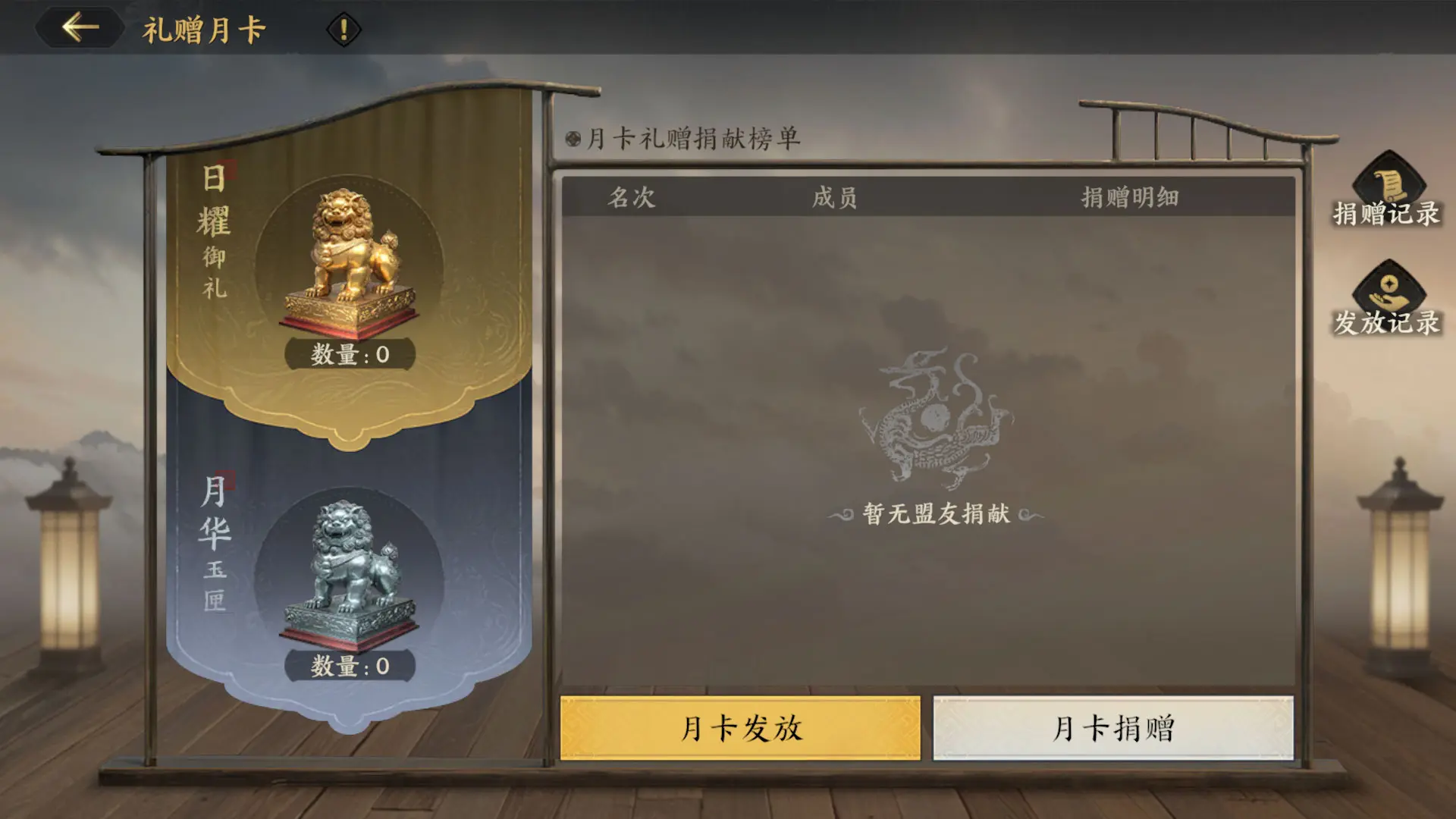 ●赠礼月卡:成员可购买月卡赠予联盟,由盟主统一分配。