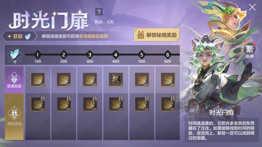 完成任务提升等级免费获取3天满级星盘特权卡、英雄碎片等奖励;付费30元可得史诗皮肤自选箱、头像自选箱;付费128元可额外获得梅朵·华钟鸣蒲牢、橙心钻等奖励。