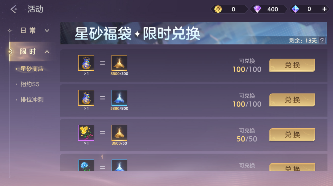 ★活动预告:限时秘境、星砂商店、排位冲刺等