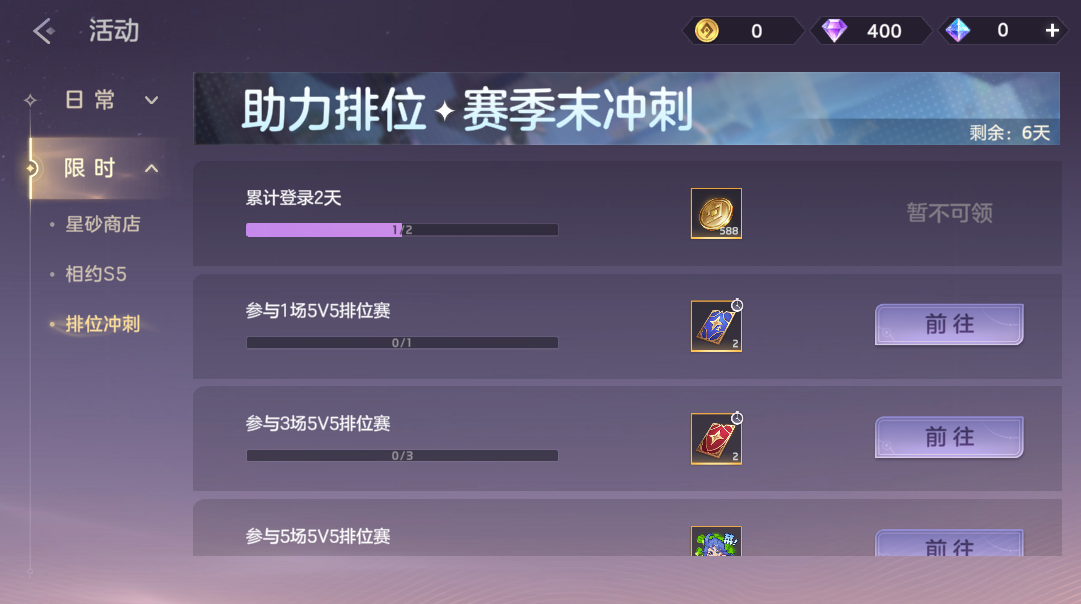 完成排位赛对局任务即可获得菜表情、排位加星卡、排位守护卡等奖励。