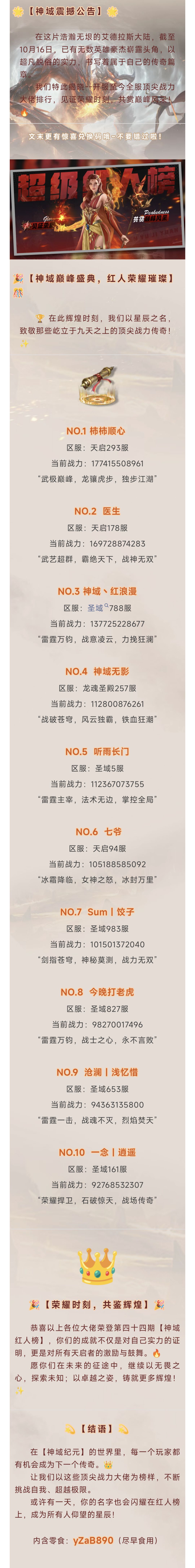 【神域纪元】红人榜丨第四十四期震撼来袭!