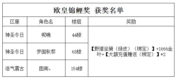 恭喜以下获奖玩家,奖励将于7个工作日内发放,如有疑问请及时联系客服~