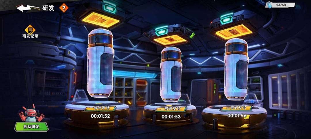 通关2-6,就会解锁一个功能叫作研发,很香,每2分钟可以产出各种资源,抽卡券都可以出几十抽。有条件的可以买个自动研发特权,可以每天多一些资源。