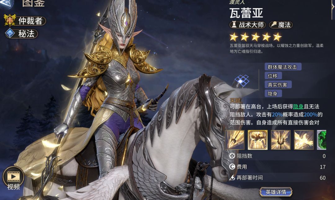 竞技场:可搭配白腿、白胖打群体竞技场,瓦蕾亚有竞技场专精(竞技场中提升15%伤害),清怪效率一流(统治级别英雄)。
