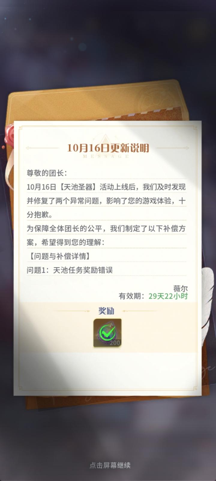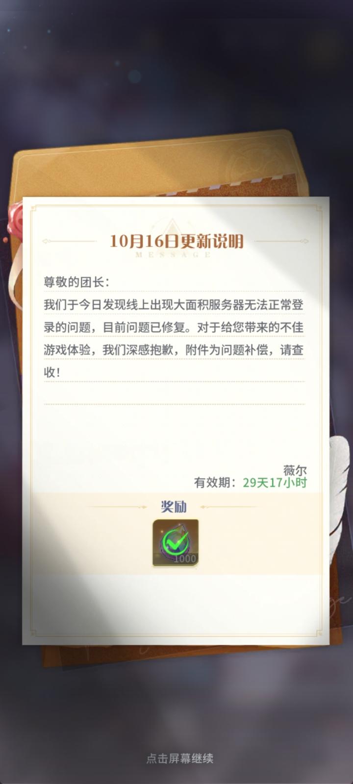 针对2025年10月16日bug门事件,我以玩家的身份向版主提了建议:天极圣器小绿瓶额外补偿10抽,(补到50抽,给玩家补偿1个小绿瓶本体。)当然很遗憾,官方未进行采纳。(200星钻=天极圣器继承保底权收回)。有人私信我,我上一个帖子有玩家评论我是官方的拖,然后该留言被官方封禁的。我这里郑重声明,本人只是普通玩家,这闪耀会长得来都是血泪,当然这个过程中,也是多亏了版主蜜雪儿的纠错机制。bug门bug盘点:1.停服4小时(5点-9点系统性崩溃)。2.天极圣器抽卡界面bug(已修复),抽小绿瓶天极圣器图标消失了。3.公会远征出bug(已修复),无法远征。4.抽小小绿瓶天极圣器界面(已修复),抽数没办法领了。5.部分公会,公会的夺宝奇兵,出bug,进不去(已修复)。6.公会对战出bug(历多次修复,已修复),界面还是昨天的。立贴为证。#