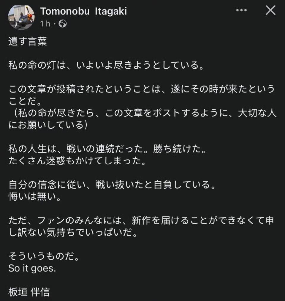 知名游戏制作人飞升,没能带来新作深表遗憾