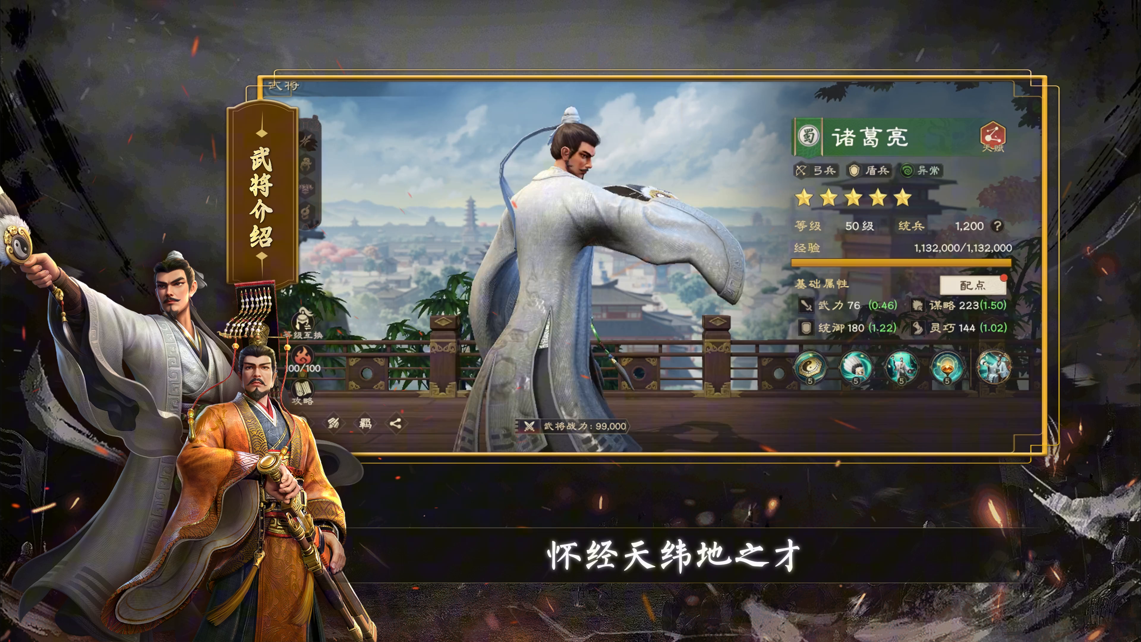 !刘备高统率成长,其主动技可有效提高队伍作战能力;诸葛亮顶级智力加持,其拥有