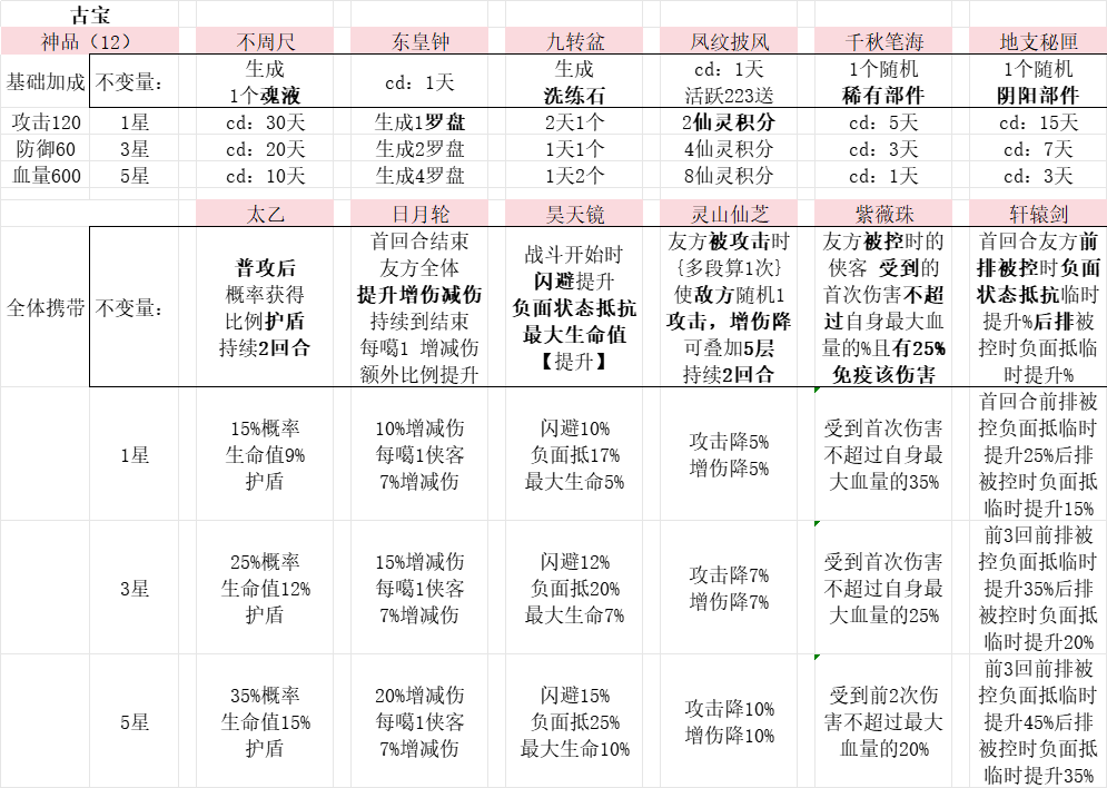 古宝 基础属性+星级技能 其中 基础加成获得古宝就会加上 且随升星逐级提升