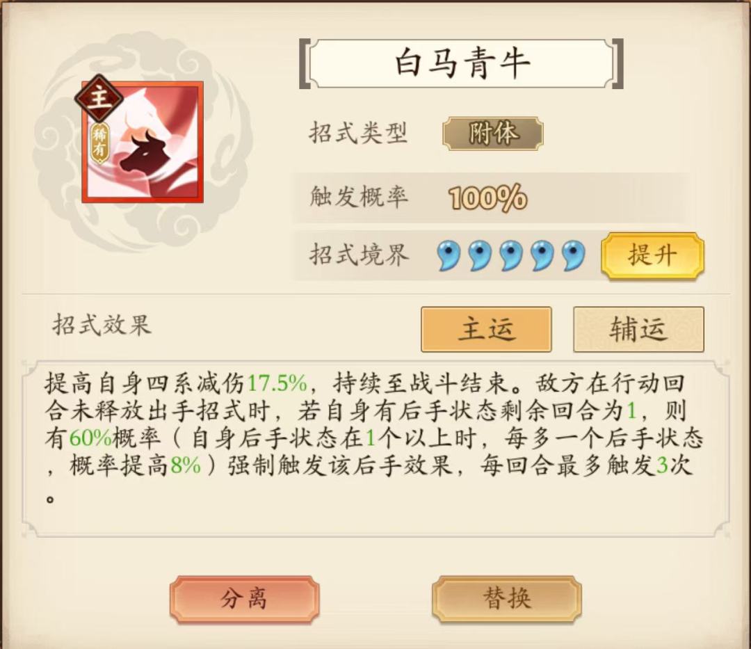 首先要想了解阴奇并熟练掌握阴奇各种对局配招,需要认识到阴奇套路的强度来自哪里,是青天神花扇?NO!扇子不触发也经常赢,触发了也没少被爆锤的经历都不少见吧。那是什么原因呢?这里就需要向大家再次介绍两个招式:白马青牛 后发制人