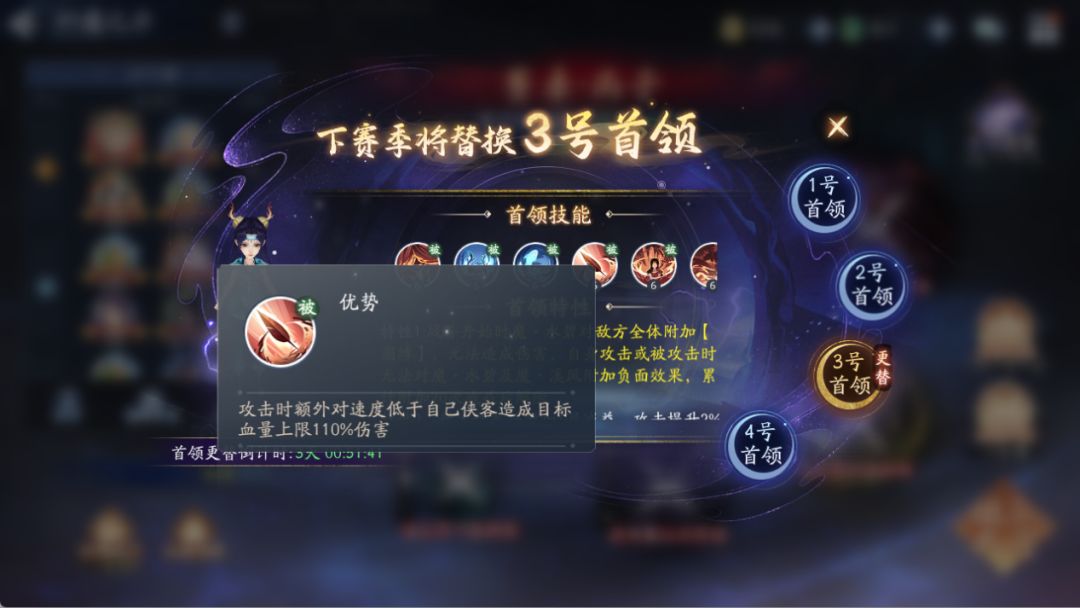 【短评】:同特性1保持一致,需上场能够带来减益状态的侠客,可获得理论最高可获得30%攻击提升,降低boss难度