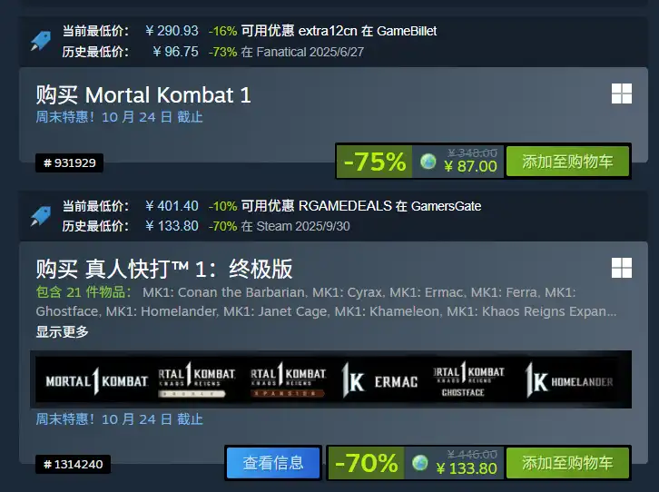 《真人快打 1》迎来新史低折扣!