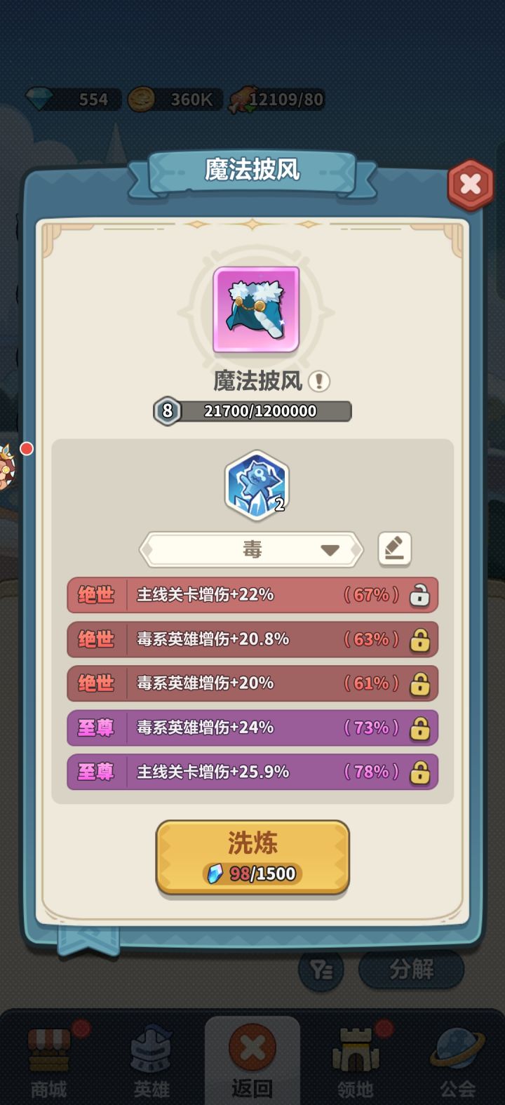大家一定要洗一套主线披风,主线伤害加的很多,打主线提升的很明显,没有主线披风真的很难受。可以带个boss增伤,配合英雄秒boss。