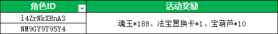 活动奖励:魂玉*188、法宝置换卡*1、宝葫芦*10。