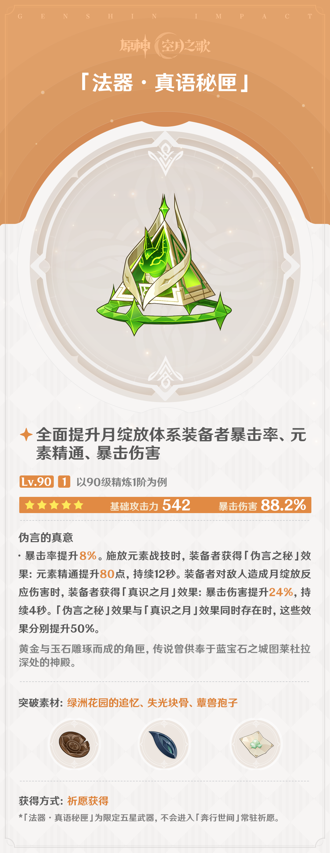 「月之二」版本中即将上线「法器·真语秘匣」等全新武器,一起来了解吧~