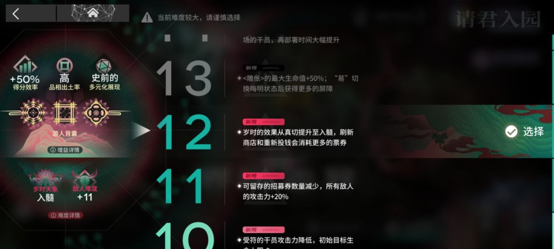 2. 游客分队无人或单人电表倒转通关难度增加,原先理论任意干员甚至无人皆可单人通关变为要求一层可通二战,且目前新增的驱虫对大部分高台干员不友好,想尝试该玩法的玩家一定谨慎开启