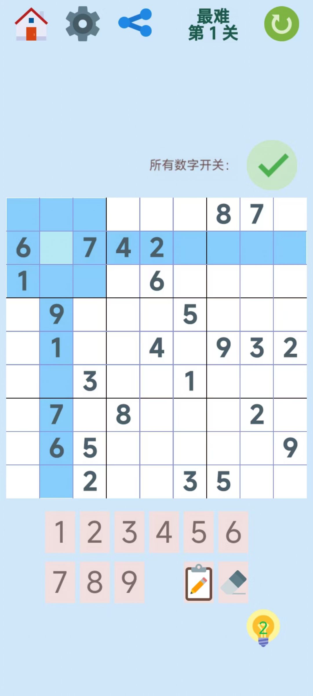 目标:使每一行、每一列、每一个3x3的粗线宫(共九个)内的数字均包含1-9,且不重复。