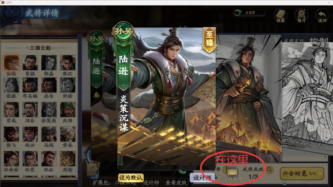 回答:很多萌新估计到时候开局买陆逊和吕雉动皮,不会设置为背景。以陆逊为例:收藏-武将-孙吴-陆逊-找到动皮。如图: