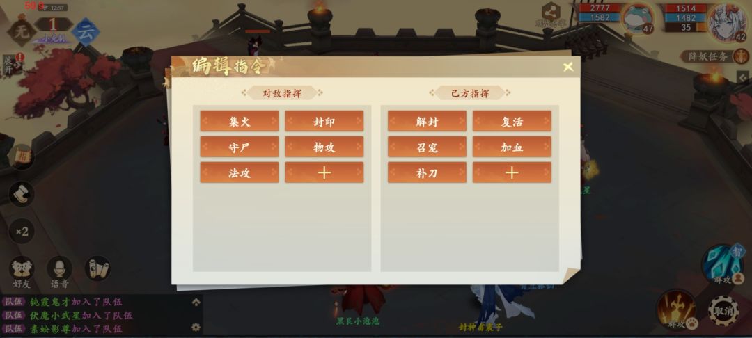 (3)注意使用伙伴指挥指令,进行集火、封印和治疗