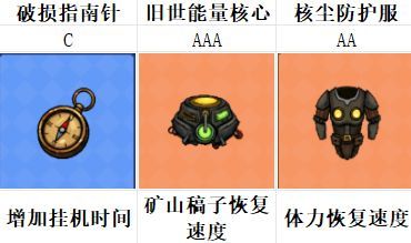 1.作为养成型游戏,资源为王,所以能带来资源增益的藏品可作为第一优先级升星核心以 恢复速度 资源收益 钞票获取为主,第一个就是破损指南针,品质低 收益高,主要是好升级,获取的收益也很稳定;其次就是旧世能量核心,这个也很不错,优先级也是非常高的,挖矿的资源很可观;再就是核尘防护服,这个很重要 玩家也可以优先考虑,毕竟体力是这个游戏的核心,没有体力什么都干不了。