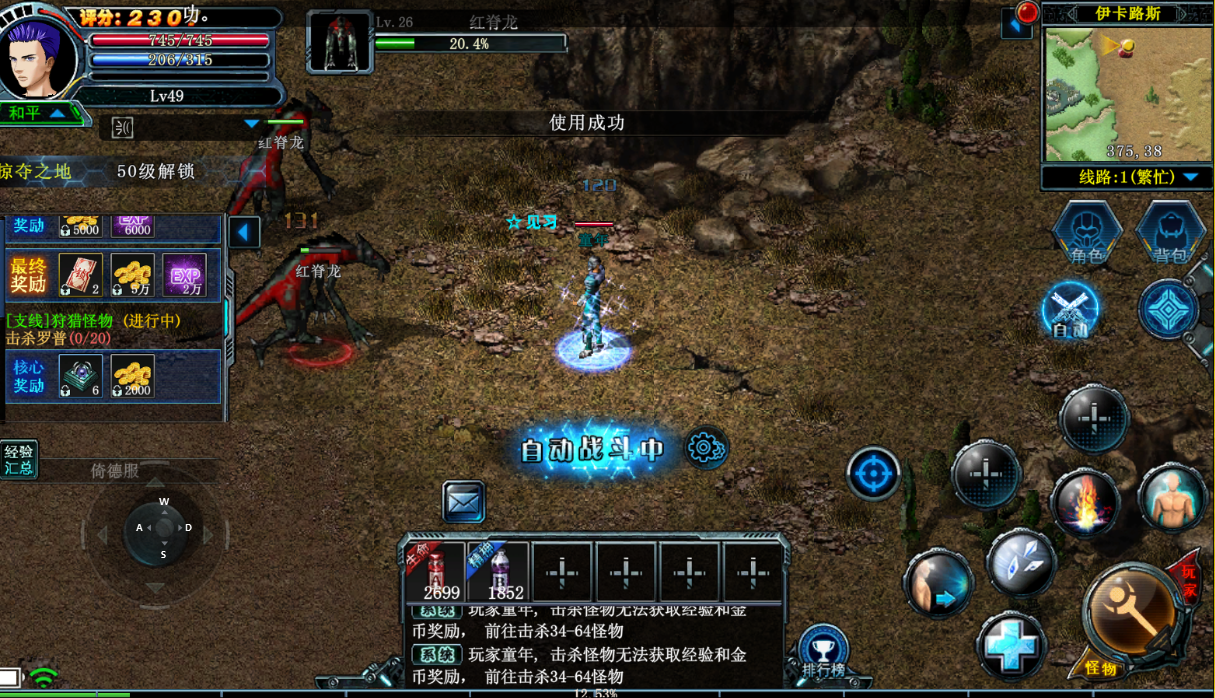 第一步也是冲榜最主要的一步!了解服务器开服时间,蹲点进区,抢占先机。第一天大家任务做完都是52级,无论是氪金大佬还是0氪玩家,都一样都要卡在52级,之后就只能挂机刷怪提升经验。我们来到这个52级以后排行榜基本就定下来了,至少维持3小时以上,因为没有任务单纯刷怪的话升级是很慢的。