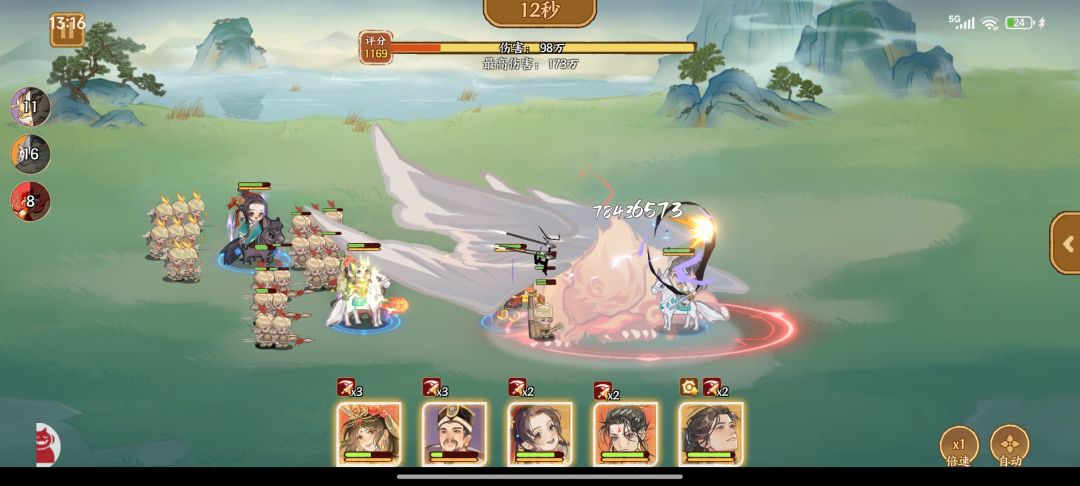 如上图,开局站位可以把李白放在前排,然后开手动1倍速,第一个李白大招可以手动开启,然后李白就会漂移到怪堆或者boss的后面,让李白可以触发暴击吸血效果!