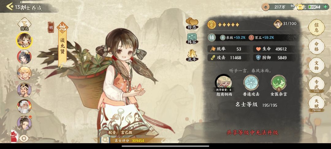 接下来讲金队的天级卡玉兔,这张卡属于五行天级卡里的垫底存在,为什么呢,因为这张卡的机制是第一次开大属于叠自己的buff层数,需要开出第二个大招伤害才比较可观,但是现在pvp和pve的大环境,这个卡基本丢一个大就暴毙了,所以只能当做一个清杂的副c,文物选择可以给她带技能吸血,可能生存环境稍微好一点,现在有些顶级大氪佬的金队都不带这个了,用满星二乔把她换下来了!