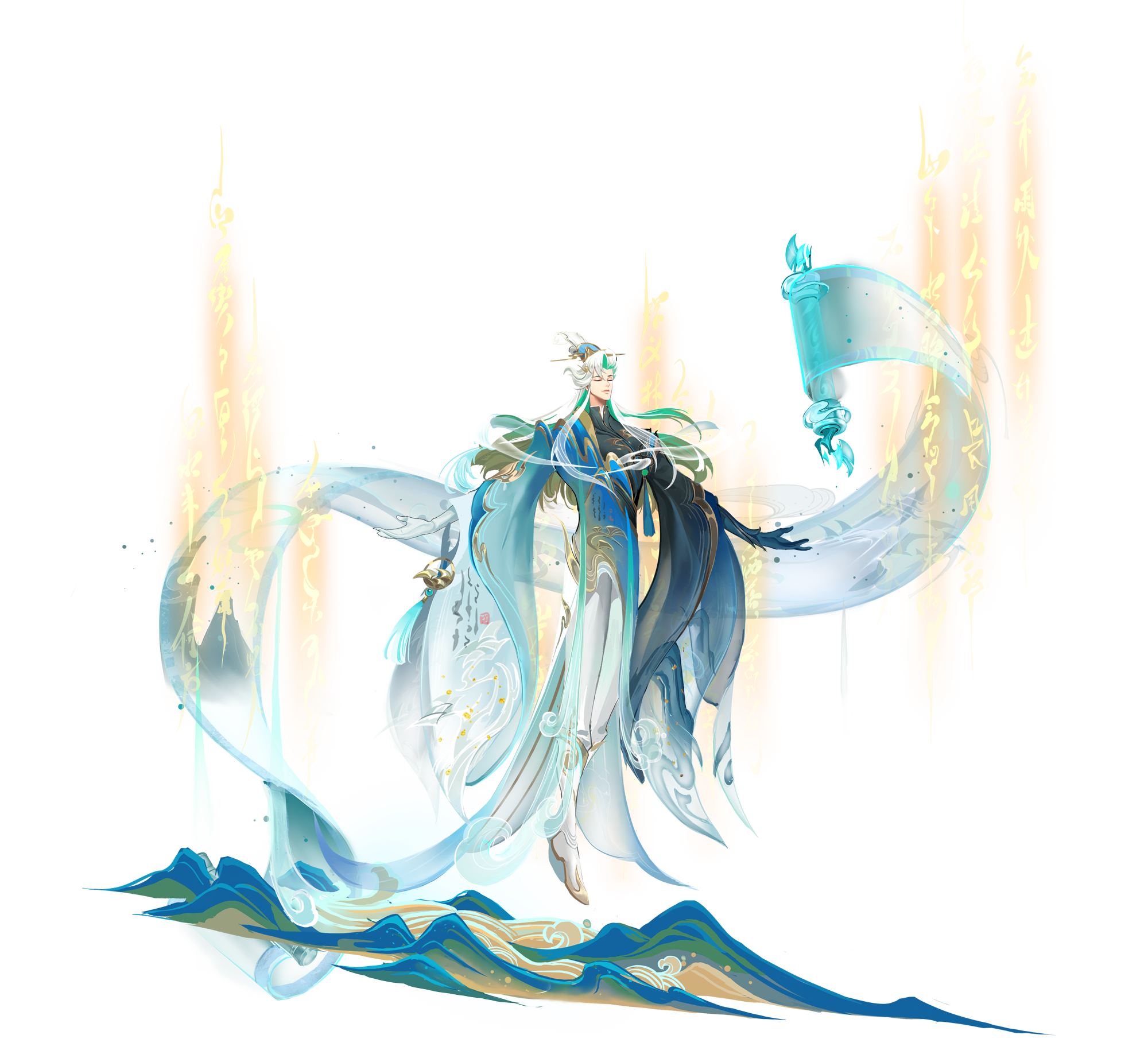 曙光裂谷中,即将迎来一位特殊的存在,他由会稽山的诗词灵气所化,身负山川之灵秀,怀揣诗文之雅韵。他踏遍祖国山河,以诗为友,以诗为剑,他就是【吕洞宾·诗华剑影】。灵感源于中国传统山水文化与诗词文化的融合,参考了《千里江山图》,并结合古往今来文人墨客游历山川、以诗词咏志的传统,塑造出一位因诗词灵气而化形的山神形象。