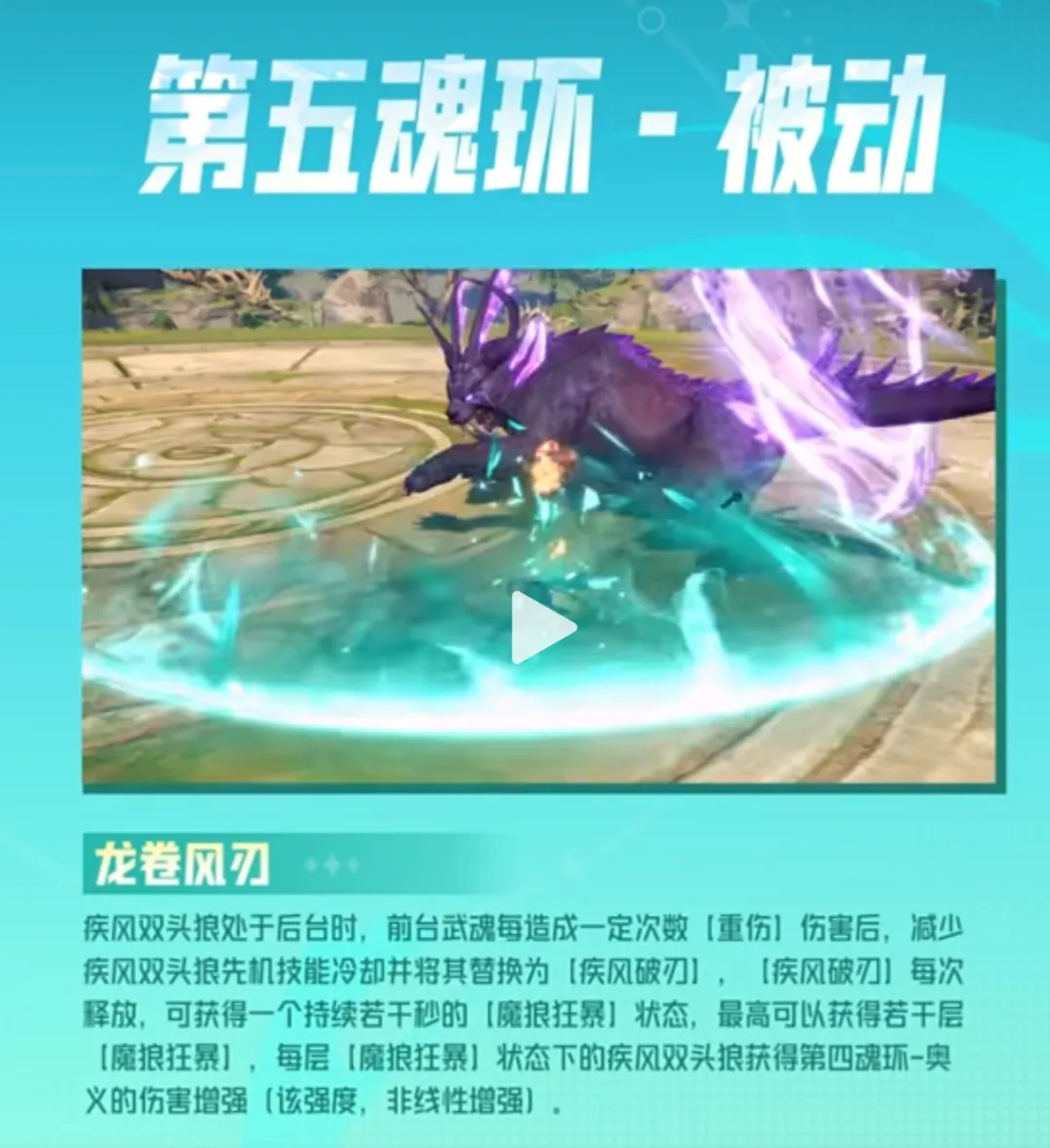 然后有趣的5被动是通过另外一个主C不断的触发重伤伤害,然后便可以帮助风笑天更快的积累“魔狼狂暴”状态,此状态可以让风笑天4奥义得到伤害提升,所以5被动+4奥义是否可以算是风笑天打主C时的技能搭配呢?