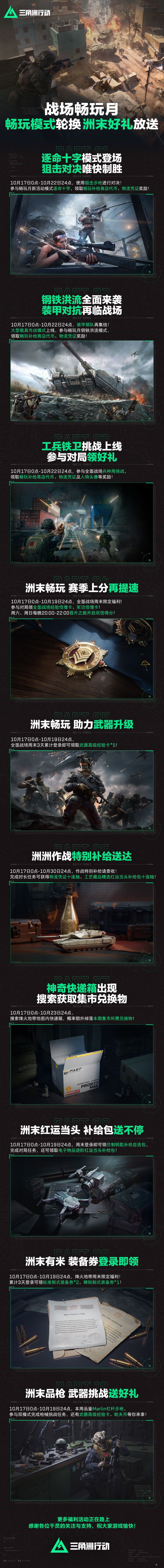10月17日-22日,全面战场逐命十字、钢铁洪流模式上线,补给代币及物流凭证对局即领!