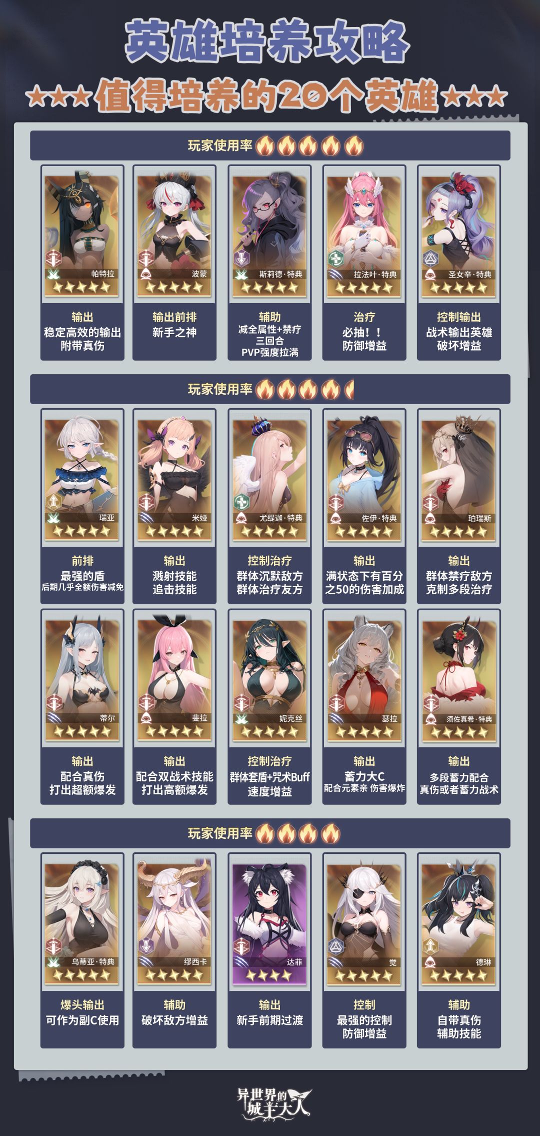 【异世界的城主大人】今天为大家带来了20个常用的英雄介绍,请查收~