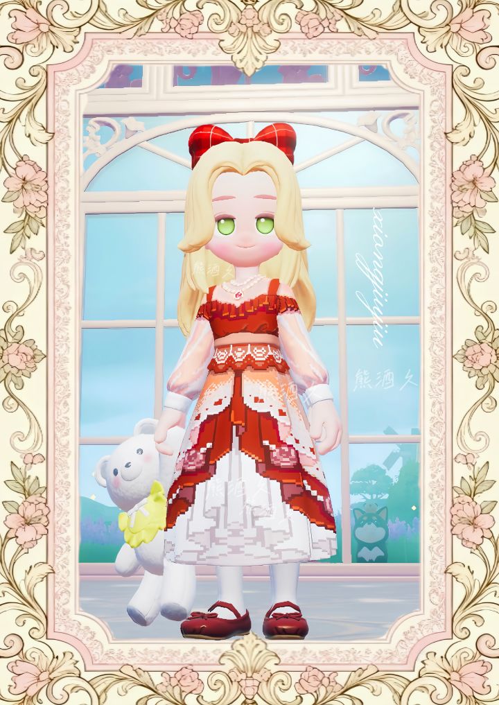 实景下随着裙身摆动会有点蓬蓬裙的感觉!!!背后的蝴蝶结有参考丝绸布料。