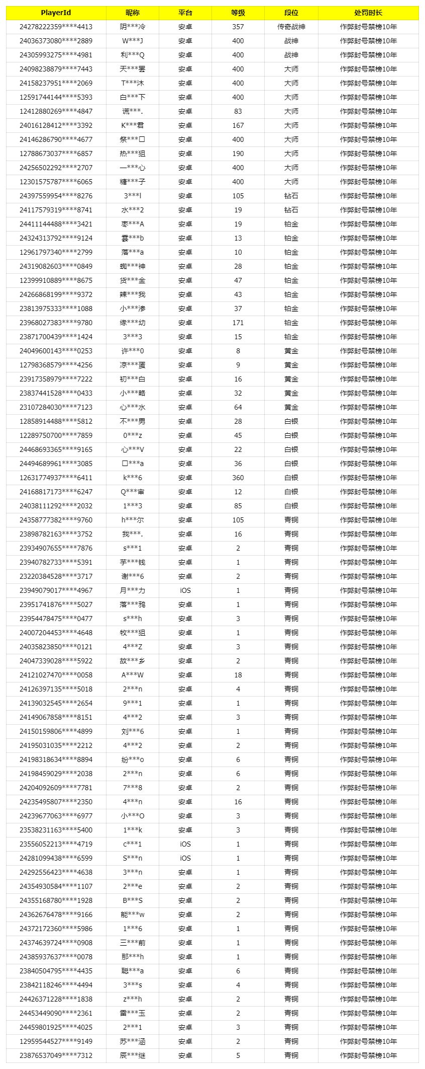 我是瘦普,最新外挂处罚公告来了。