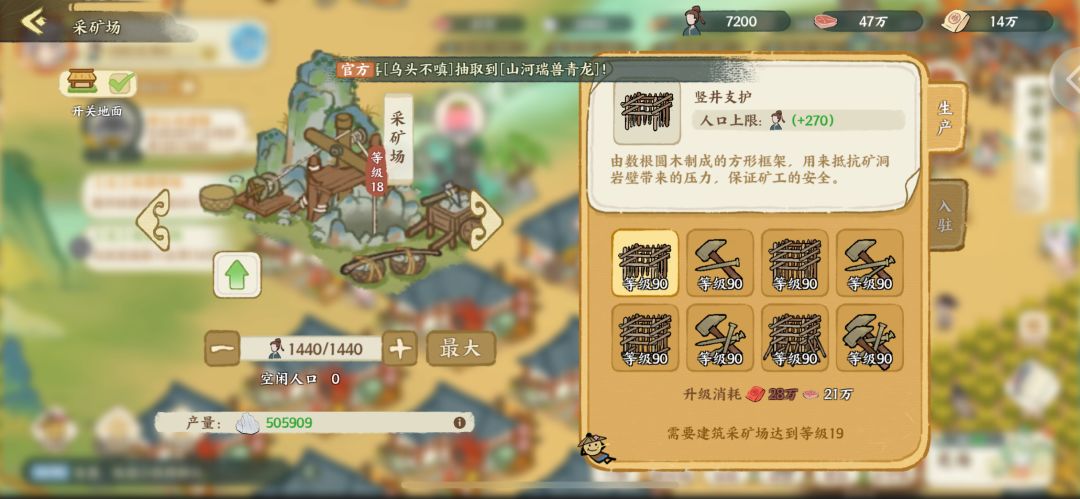 既然不是首要产铜币,那么我们的首要是增加工艺,因此,生产类建筑优先级依次为:庖厨>畜牧场>商铺>采矿场>伐木场。