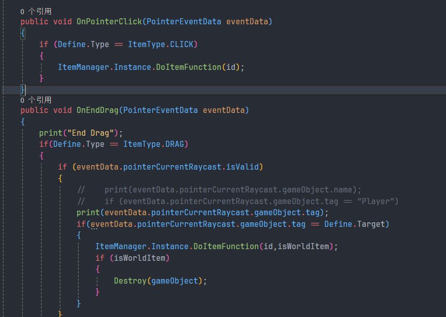 为道具添加Item脚本,根据道具配置信息,选择触发拖拽或点击功能。