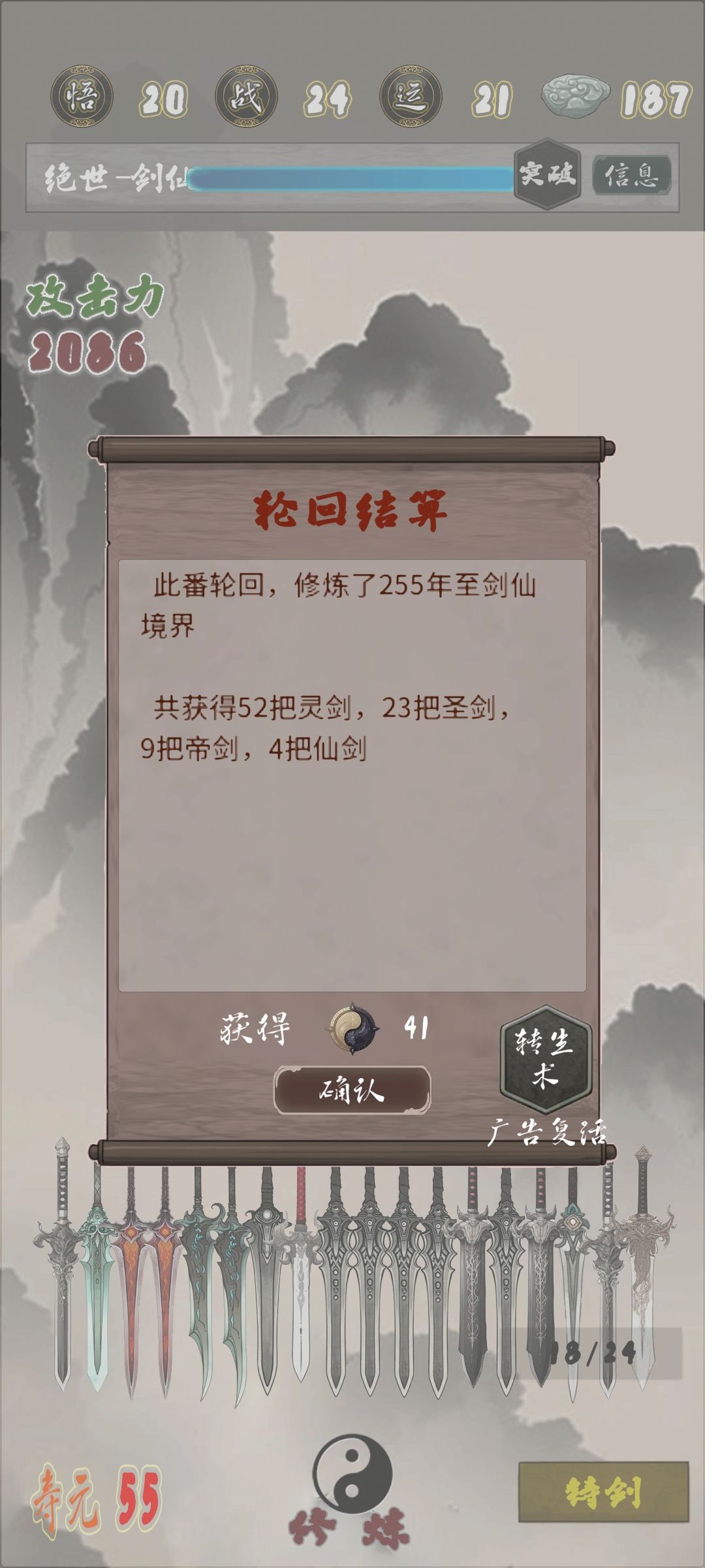 最终两把仙剑长生基本够用了