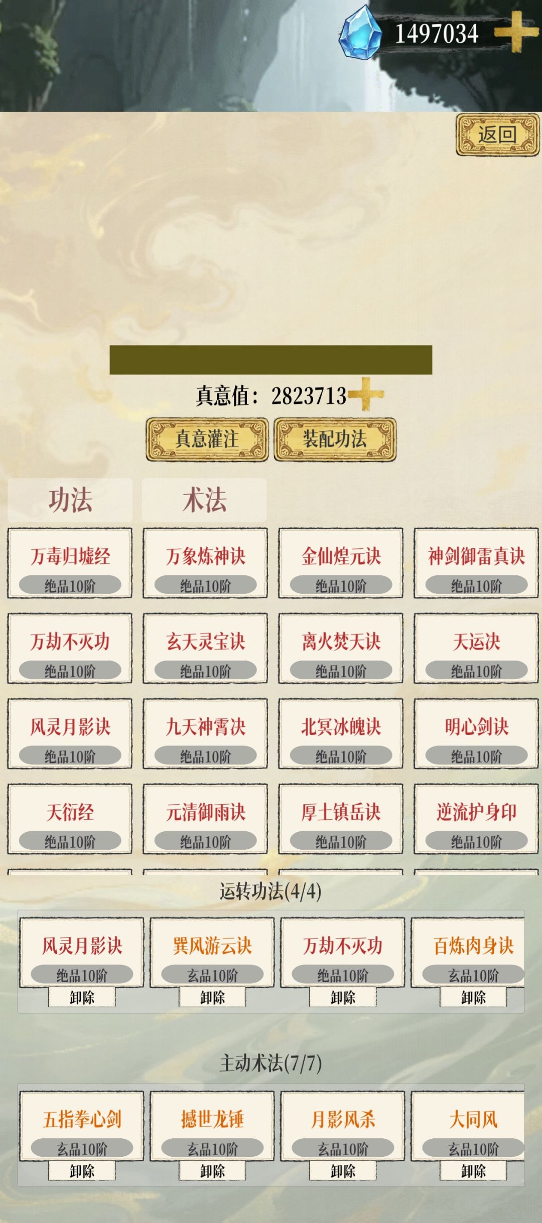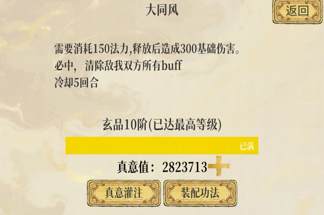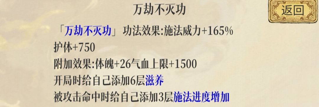 那防止被秒杀最好的方法是什么呢?当然是叠血量啦,这样自然而然就想到用万劫不灭功搭配撼世龙锤这套,龙锤是扣除当前50%血量打伤害,扣除的血量越多,伤害越高,而万劫是滋养buff,每回合回血,二者搭配绝配。功法里面还有一个百炼肉身诀也是加滋养buff和体魄血量的,再搭配一莲托生受击回血,玄玉佩每回合回血,武庸打得还没你回的多!![[表情_吐舌头]](https://img-tc.tapimg.com/market/images/945b09ff7a33dc3966007a3e87896ebf.png)