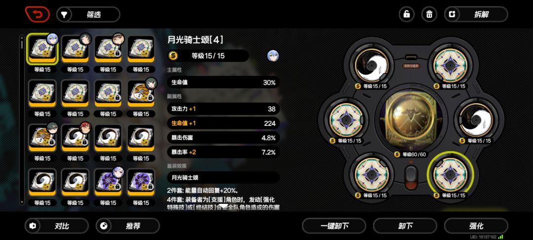 0+0的卢西娅带有回能的武器,只推荐4月光2云岿,4号位生命值,5号位生命值,6号位生命值,面板毕业也有一定难度,驱动盘副词条可以参考我的刷![[表情_微笑]](https://img-tc.tapimg.com/market/images/0f170d4b1ecf80c267e5a44b5992a199.png)