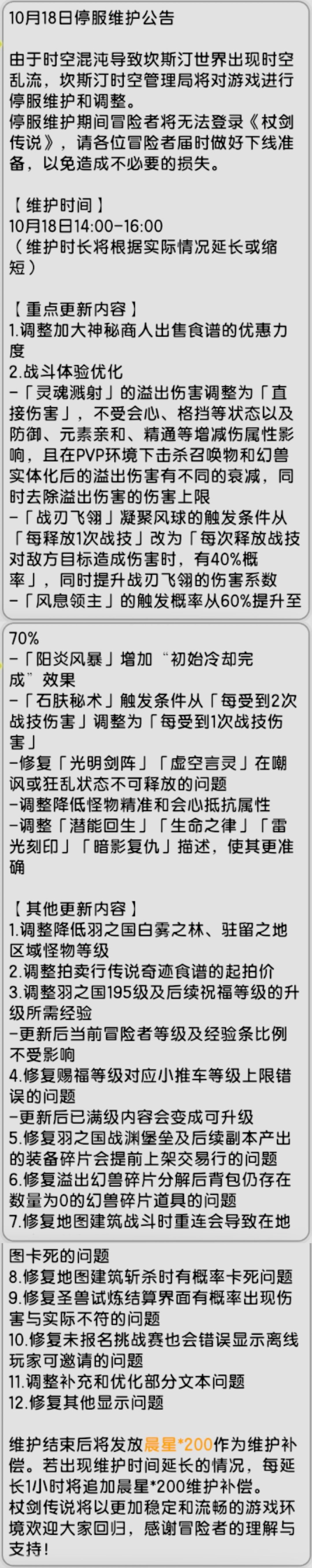 【杖剑传说】先遣服10月18日更新公告