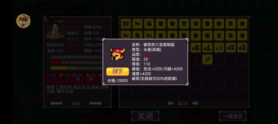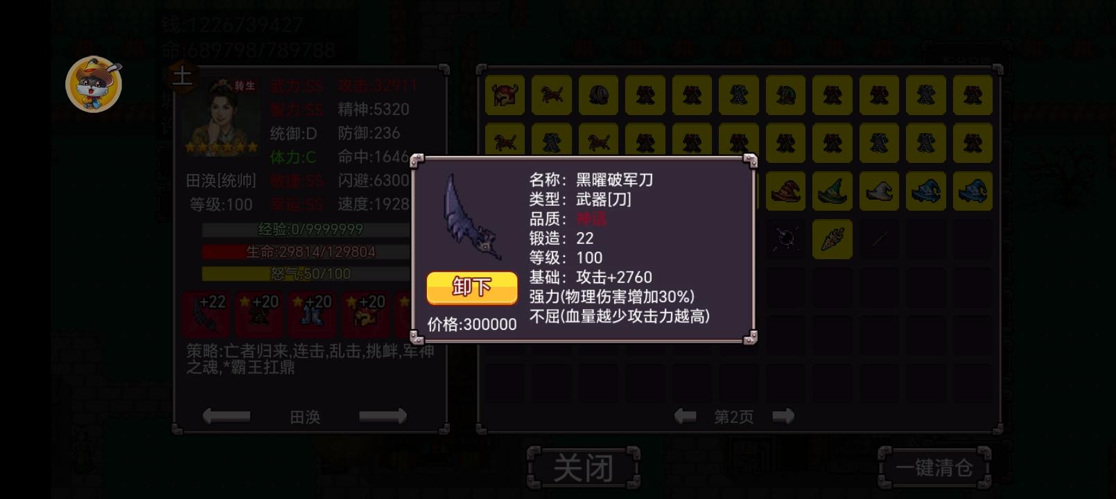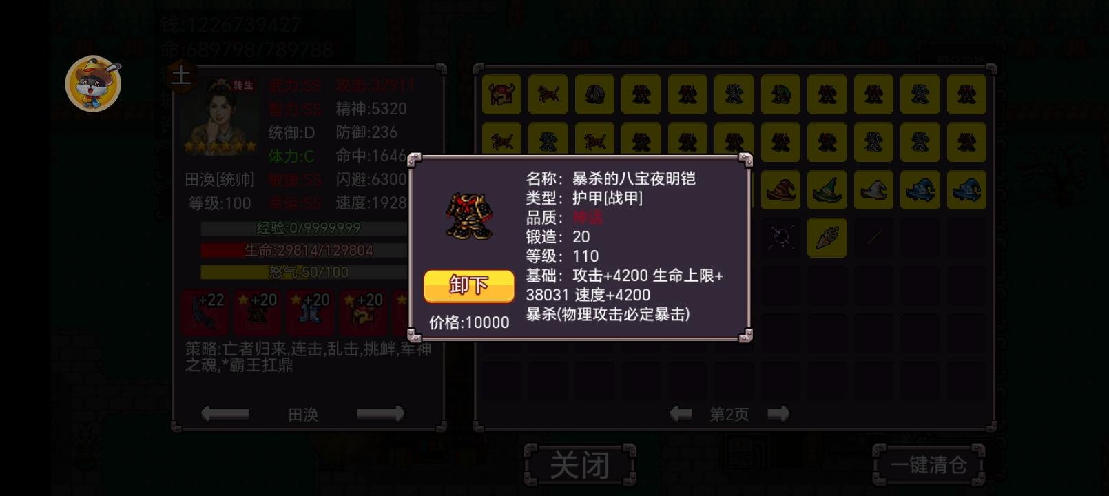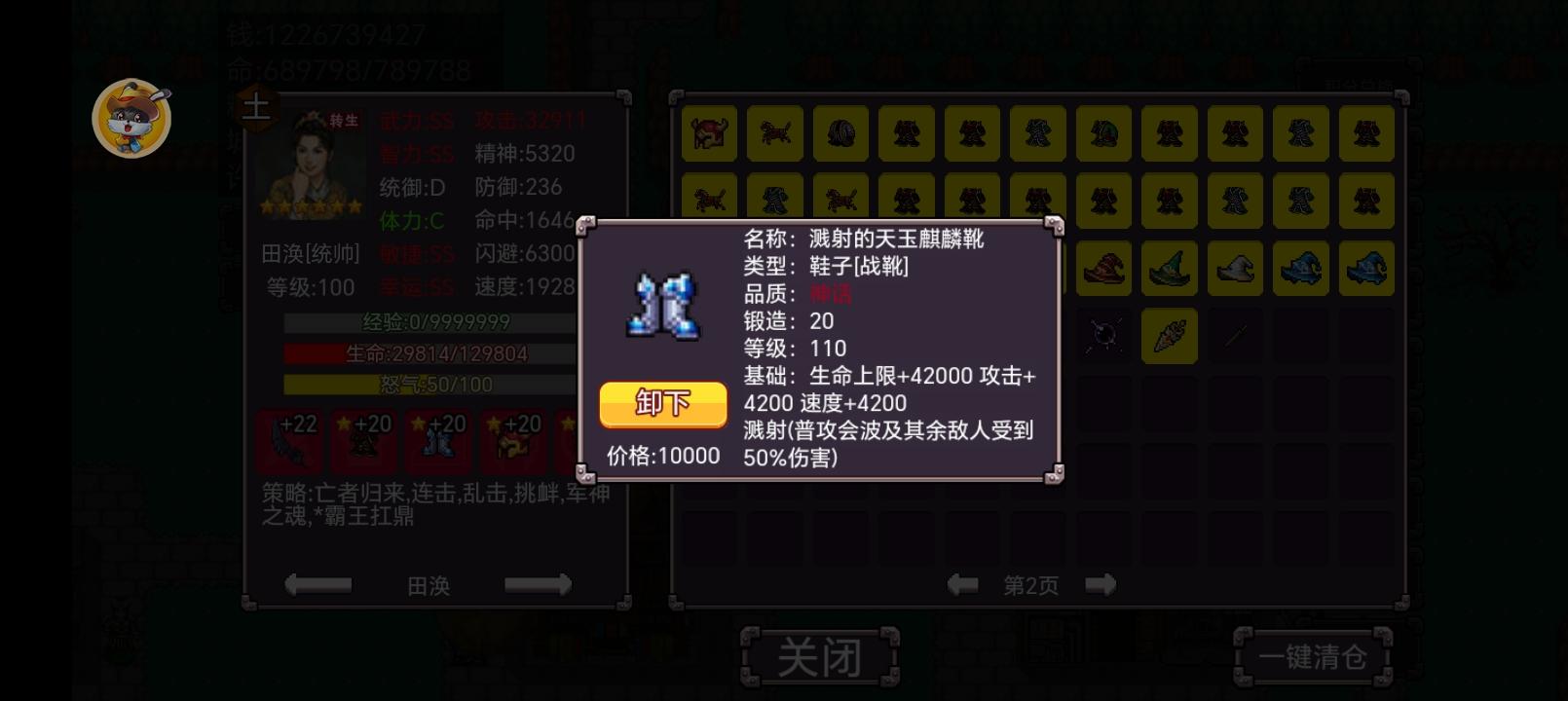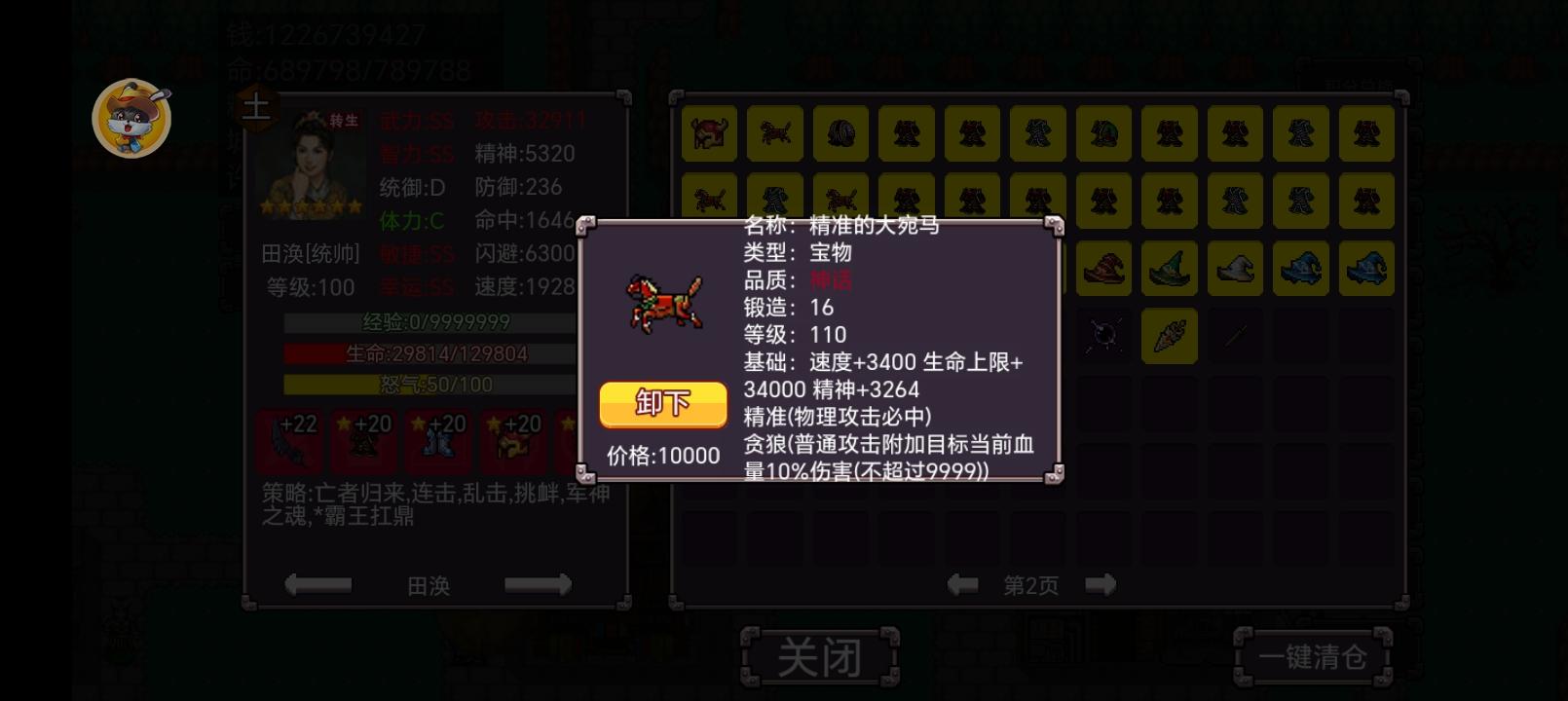 特性必有溅射,精准,转生。我的配套转生统帅开局,入局刷出精准和贪狼。溅射,爆杀,破军,商店买了一个武器是强力加不屈。剑冢头盔房刷霸王10连击。只怕肝帝混沌刷出虚无或降低命中率的技能全miss导致连小怪也杀不到。利用两个辅助弄高防御高血反震补充不足之处。