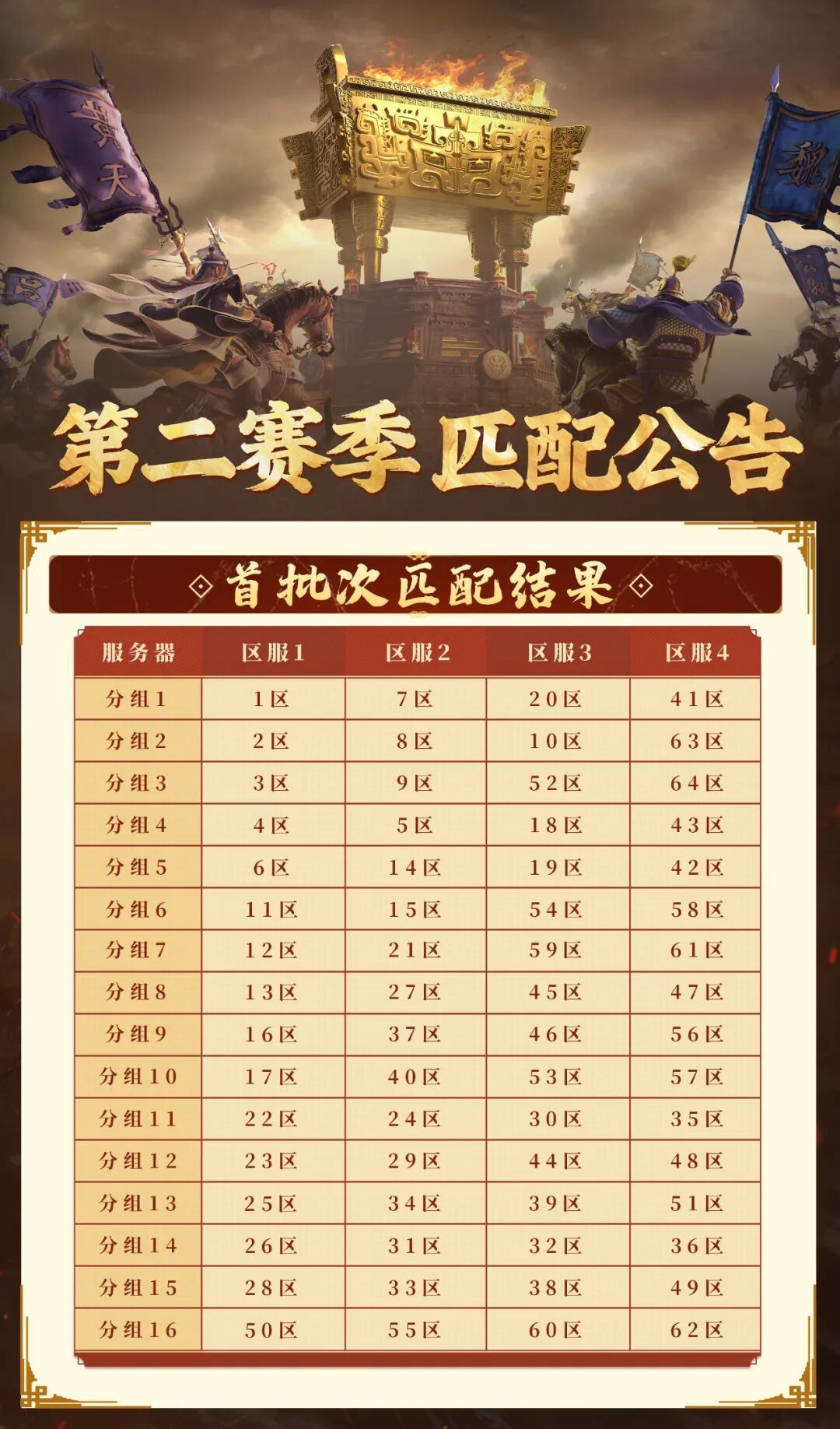 2)同一区段的服务器,将在匹配时根据服务器综合实力,每四个服务器分为一组,共同征战新赛季。