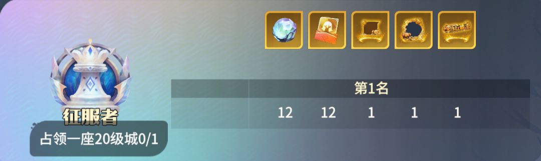 最终奖励,使用1座王城和2座卫城进行结算,占领王城可得【征服者】。