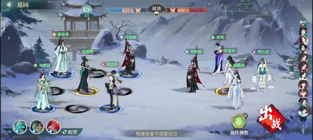 上阵:段瑕英+慕容柔+黄缨+雷门鹤+摇摆位(符若兰/秀锦/阿妍/孤独天威)